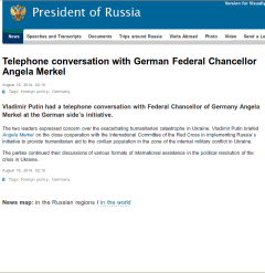 Am Abend telefonierte Merkel mit Putin und wir wollen hier die Berichterstattung deutscher und russischer Medien über das Gespräch beleuchten. Zunächst ein Blick auf die Pressemitteilungen des Kanzleramts, sowie des Kremls:
