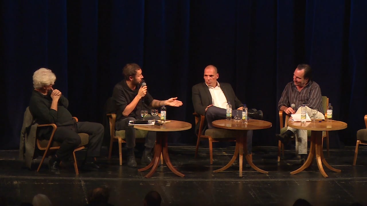 Podium mit Yanis Varoufakis, Franco „Bifo“ Berardi, Srećko Horvat und Guillaume Paoli