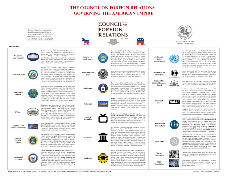 Englische Version Viele Führungspersonen und Top-Journalisten von nahezu allen bekannten amerikanischen Medien sind in das Netzwerk des einflussreichen Council on Foreign Relations (CFR) eingebunde…